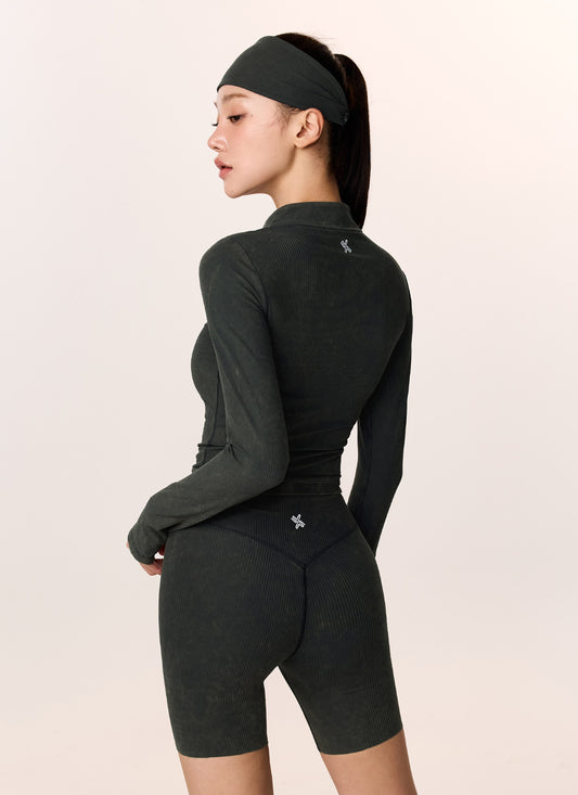 Washing Ribbed Slim Fit Zip-Up Jacket