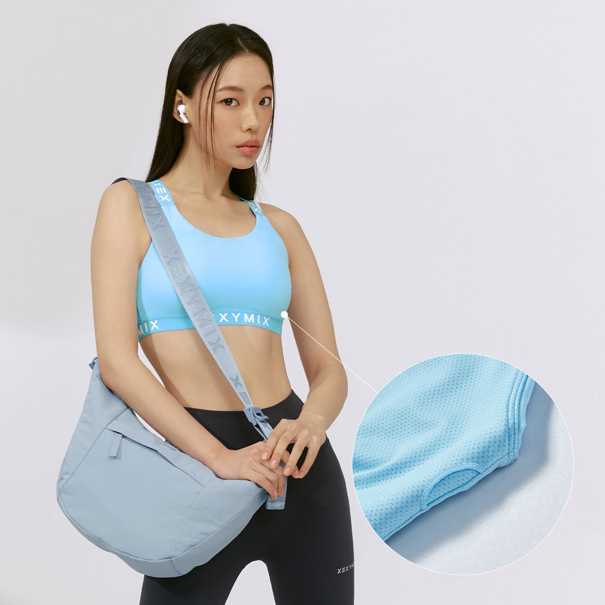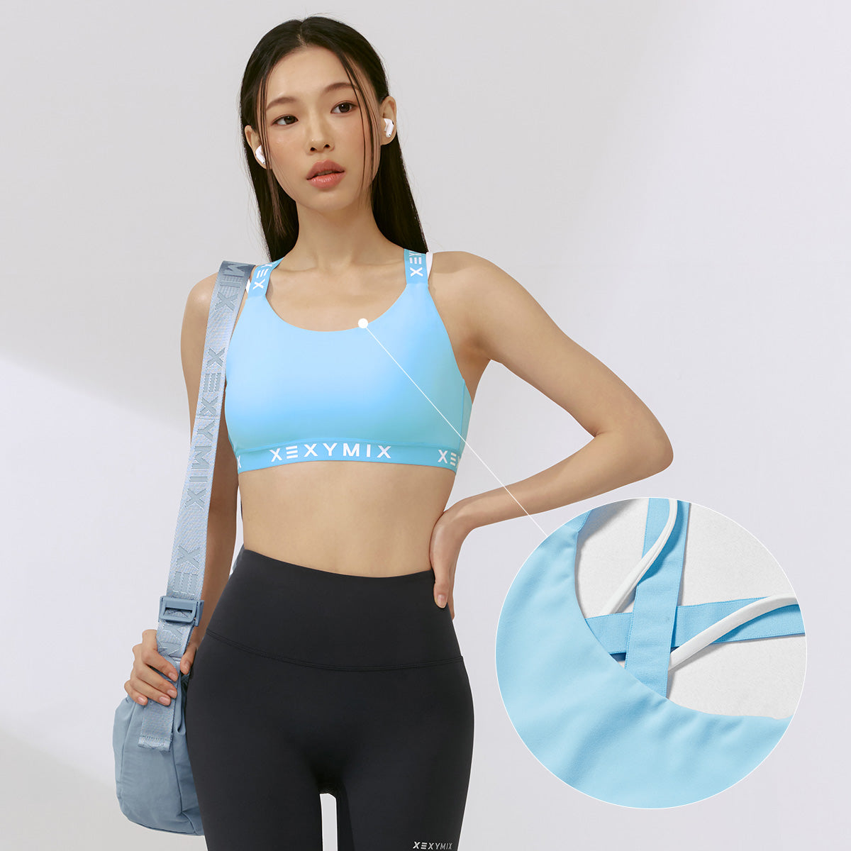 Featuring branded jacquard logo bands on the hem and crisscross shoulder straps, this design not only adds sporty flair but also keeps everything securely in place.