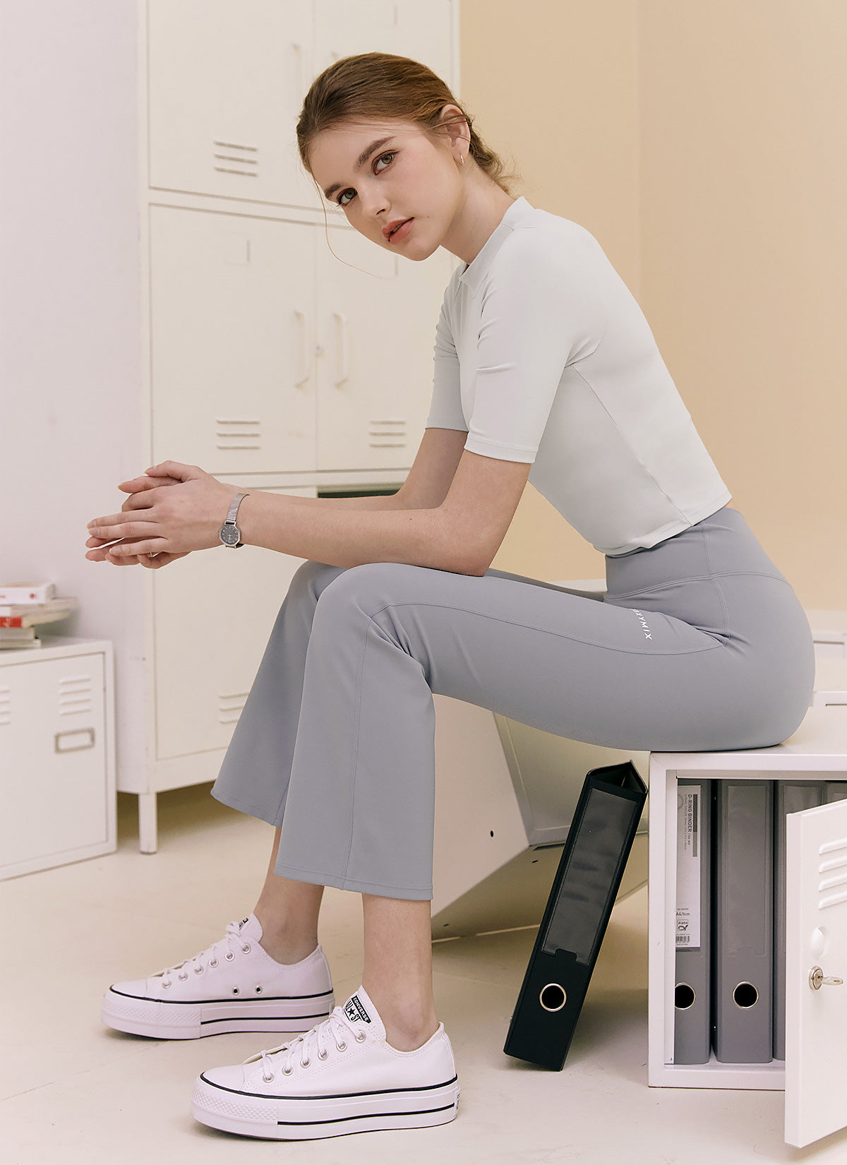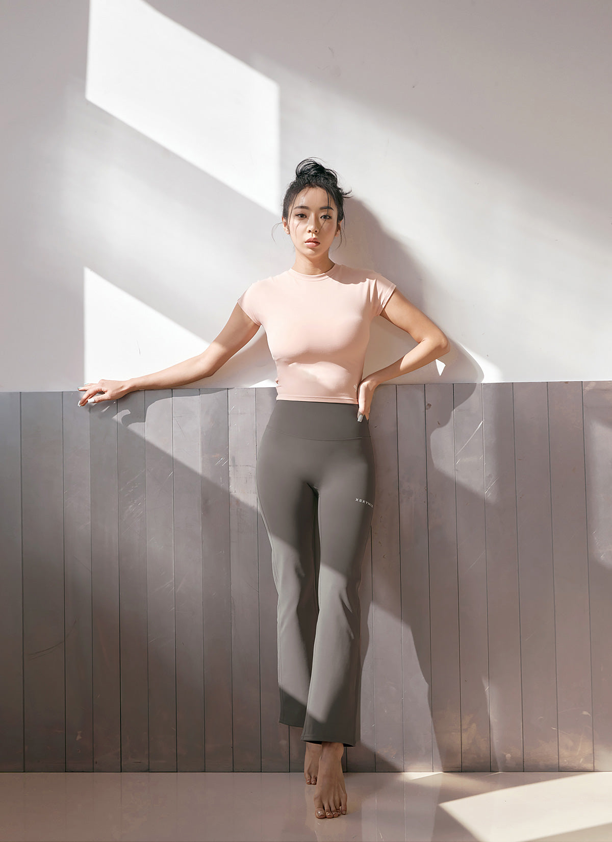 The incision of the hip line is held in a V-line to create a natural hip-lifting effect making the legs look longer.