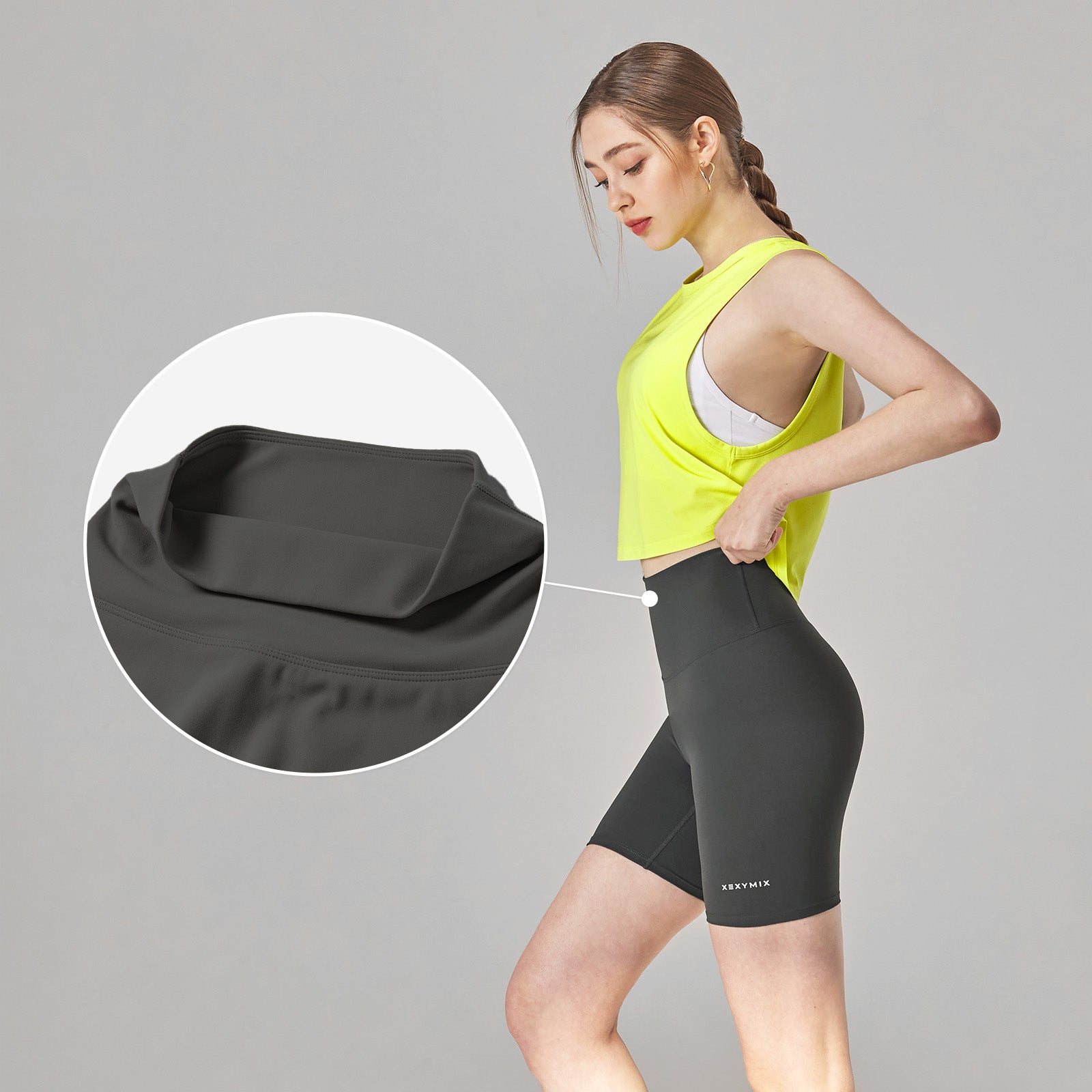 The waistband has no sewing lines to support your body. It makes you feel comfortable during sports focused on your belly.