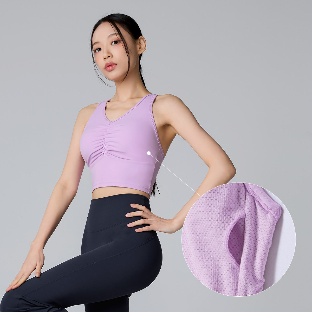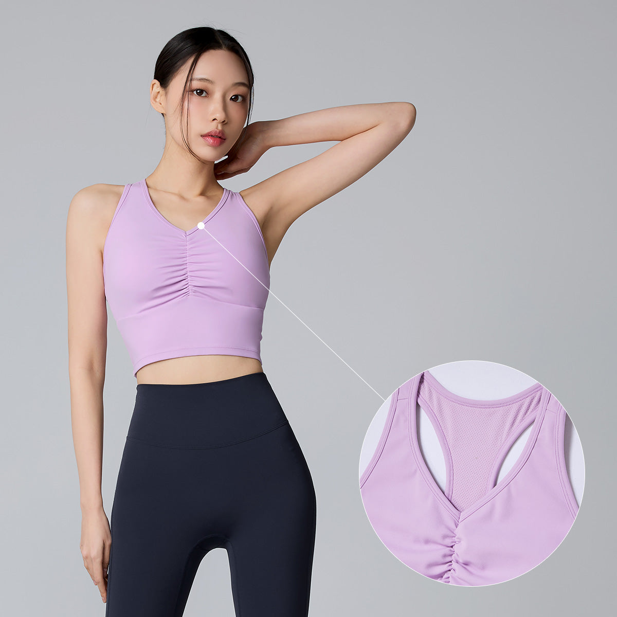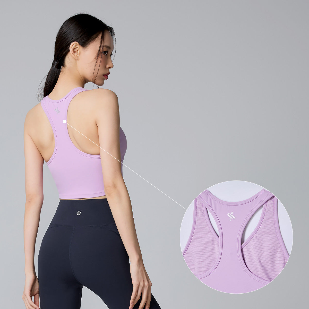 The open-back design increases the range of motion for the arms and shoulder blades, making it easier to observe back muscles during workouts—stylish from every angle.