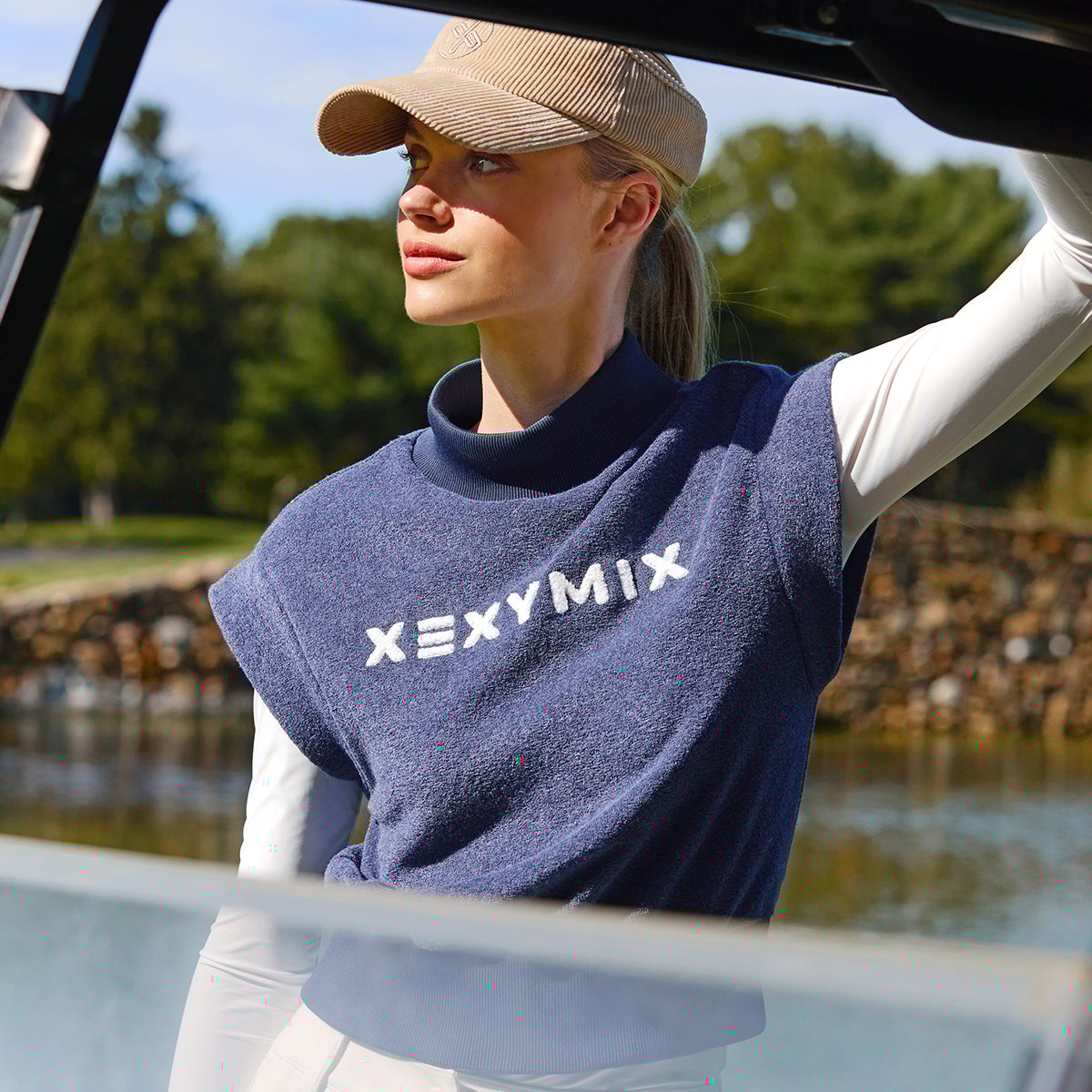 The roomy high-neck design gently wraps around the neck, offering a comfortable fit without feeling restrictive.