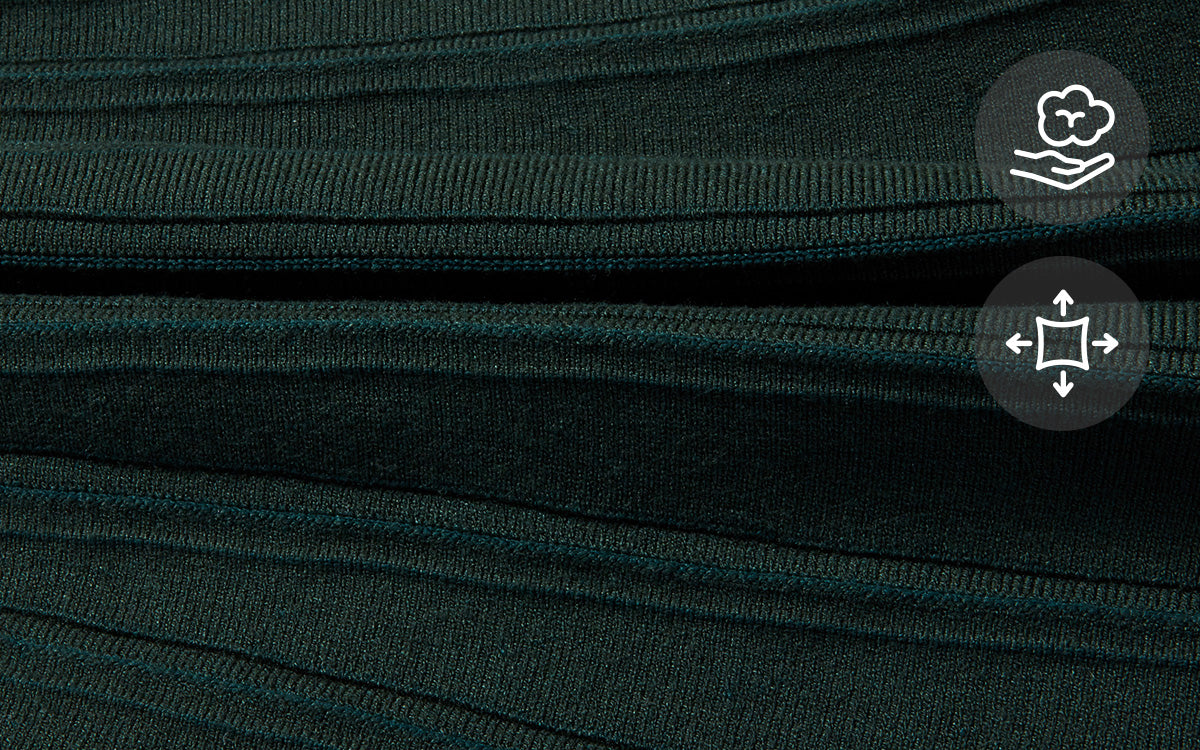 The smooth drape of the rayon blend meets the firm stretch of ribbed construction, ensuring comfort even on highly active days.