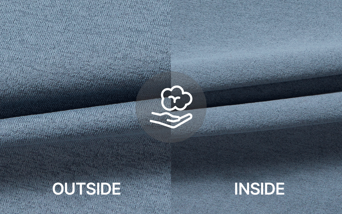 The fabric quickly absorbs and dries sweat, providing a comfortable feel and a soft touch against the skin for all-day wear.