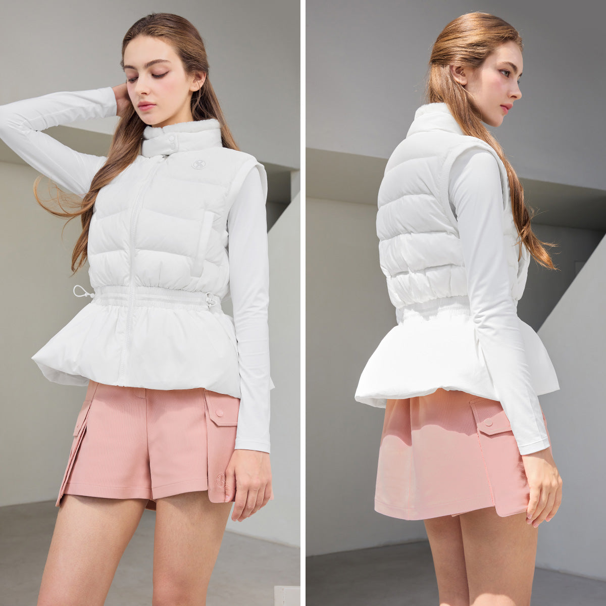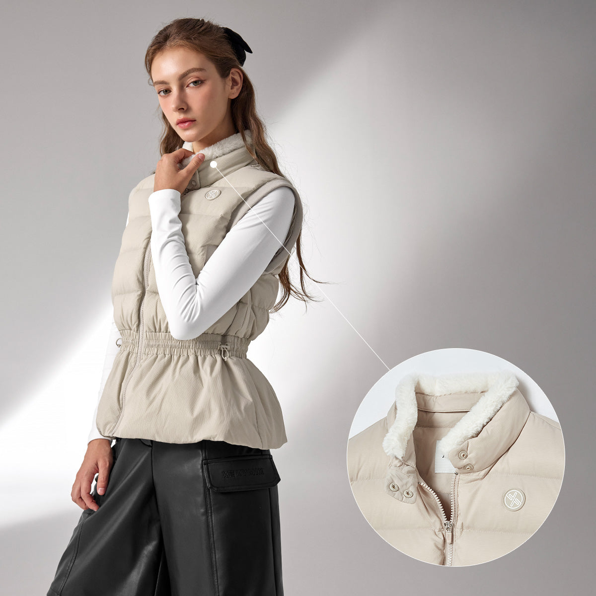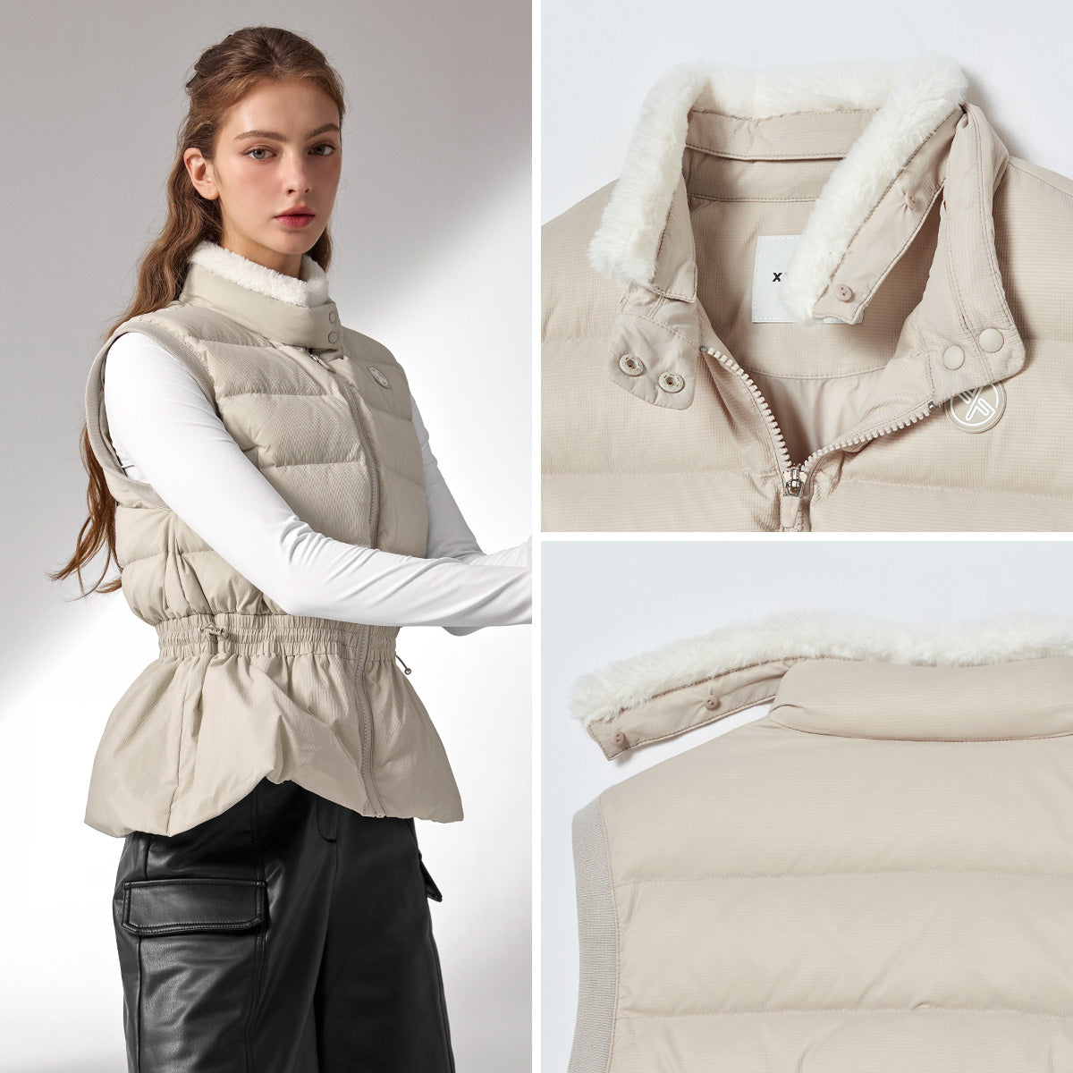 Fur Collar Peplum Down Vest
