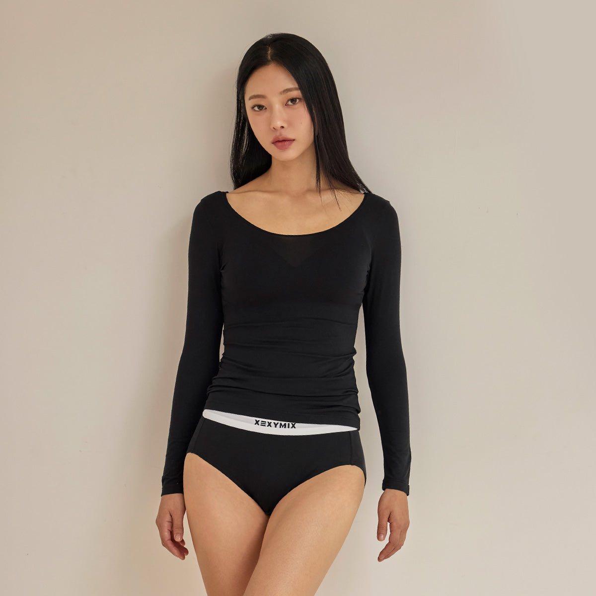 The slim fit gently hugs the body and does not affect the silhouette when worn under fitted outerwear, providing a neat appearance.