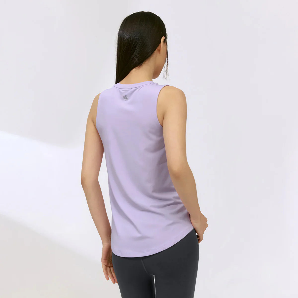 The relaxed round neckline provides comfort without feeling restrictive, while the inner seam is wrapped with the same fabric to prevent stretching.