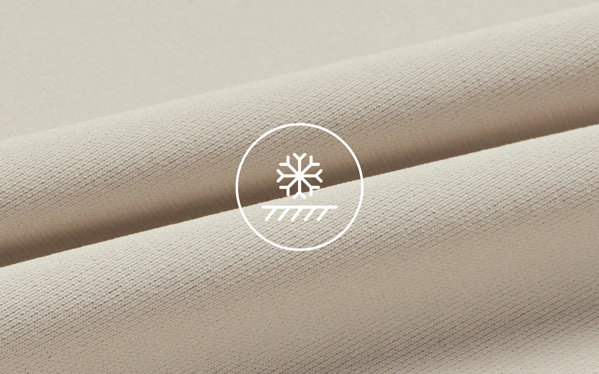 It is a material blended with Askin yarns with a unique cross-sectional structure and has a wider contact area with the skin compared to regular fibers. It quickly releases sweat and heat when it touches the skin, making it cool.
