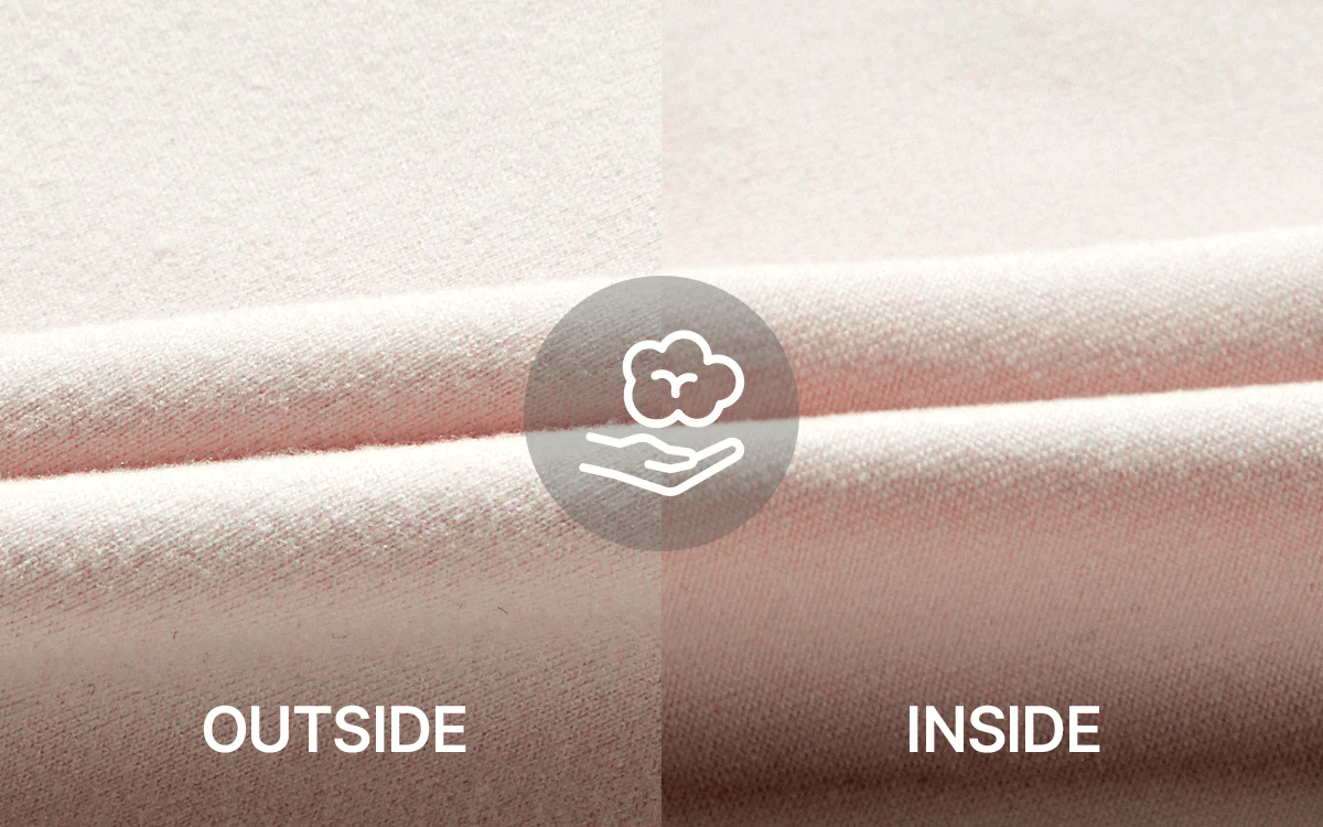 The peach-finished exterior creates a soft, brushed texture similar to peach fuzz, offering a gentle feel against the skin, while the smooth interior ensures a comfortable fit.