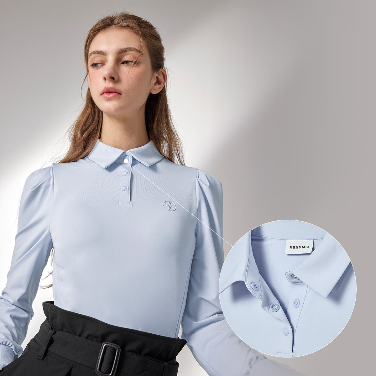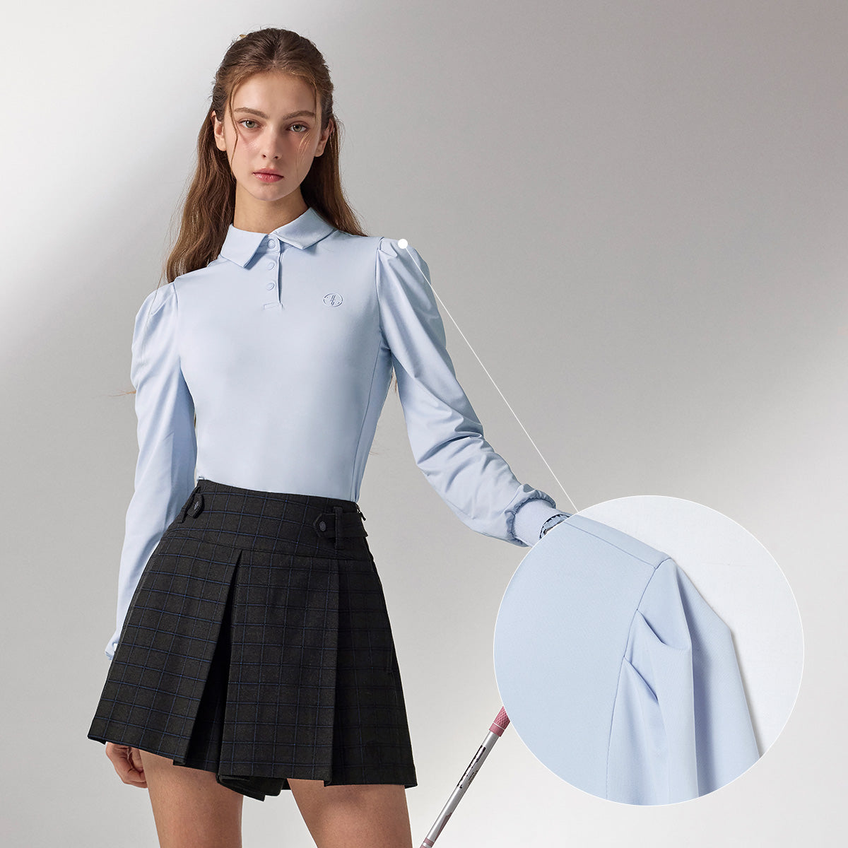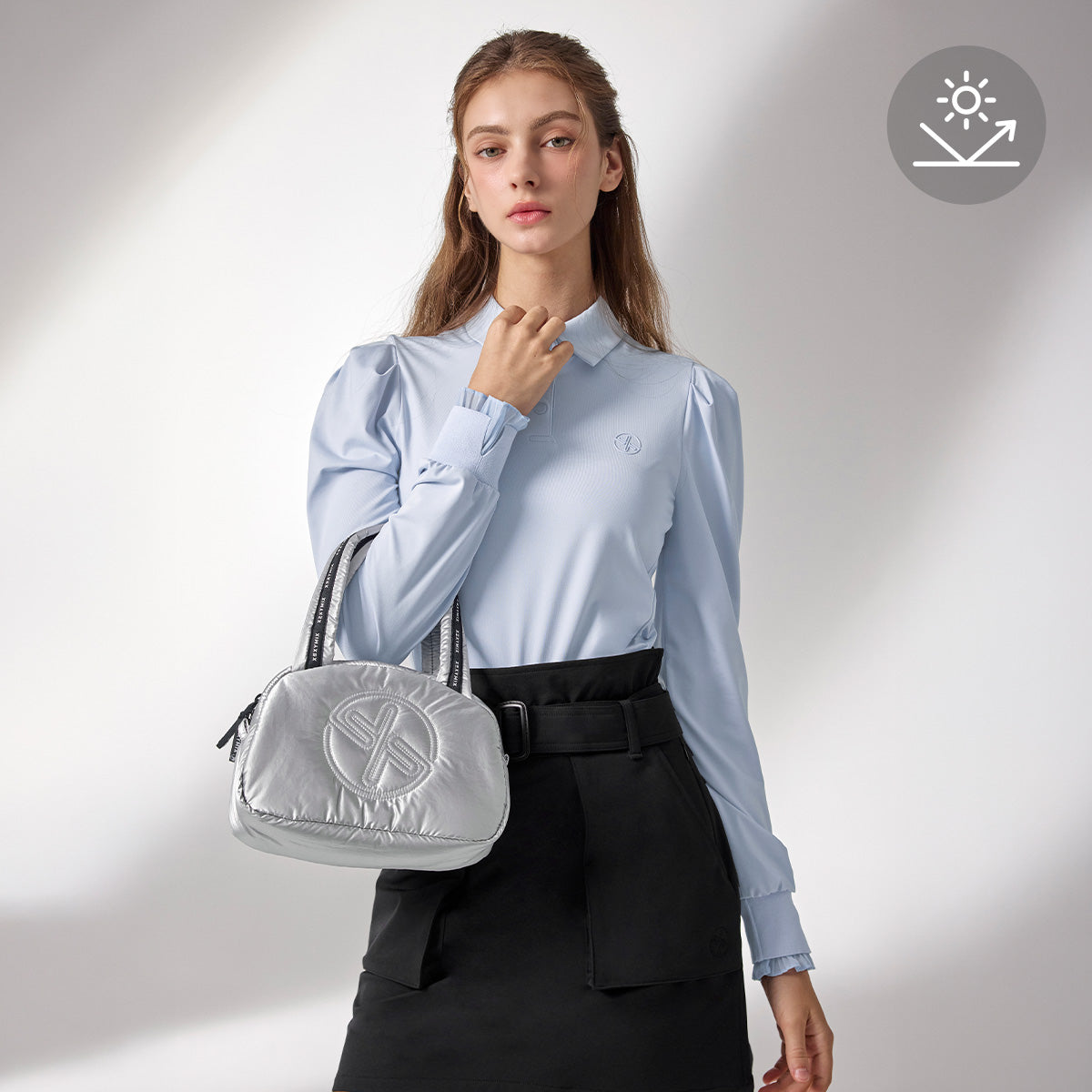 Softly voluminous shoulders create a feminine silhouette without restricting your swing.