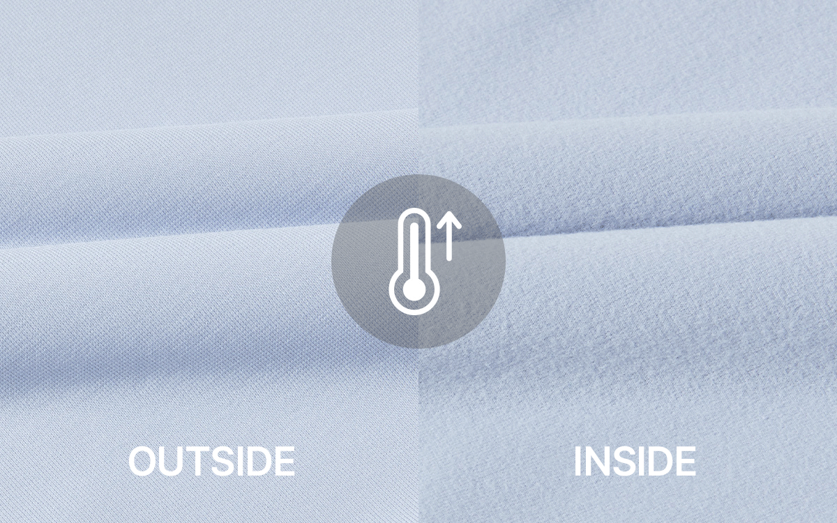 The brushed inner surface offers a warm, gentle feel against the skin, enhancing comfort and insulation.