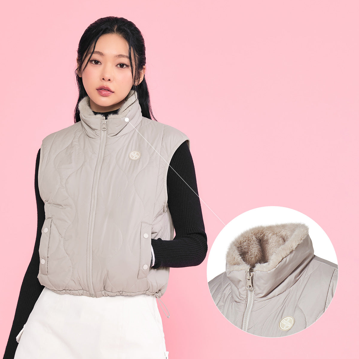 Combining faux fur and woven fabrics, this regular-fit vest is versatile and stylish—perfect for both everyday wear and on-course looks through early winter.