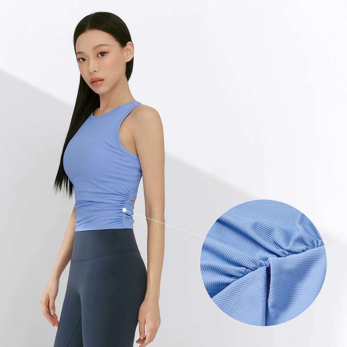 Shirring details on both sides help conceal bulges and create a slimming effect on the waistline.