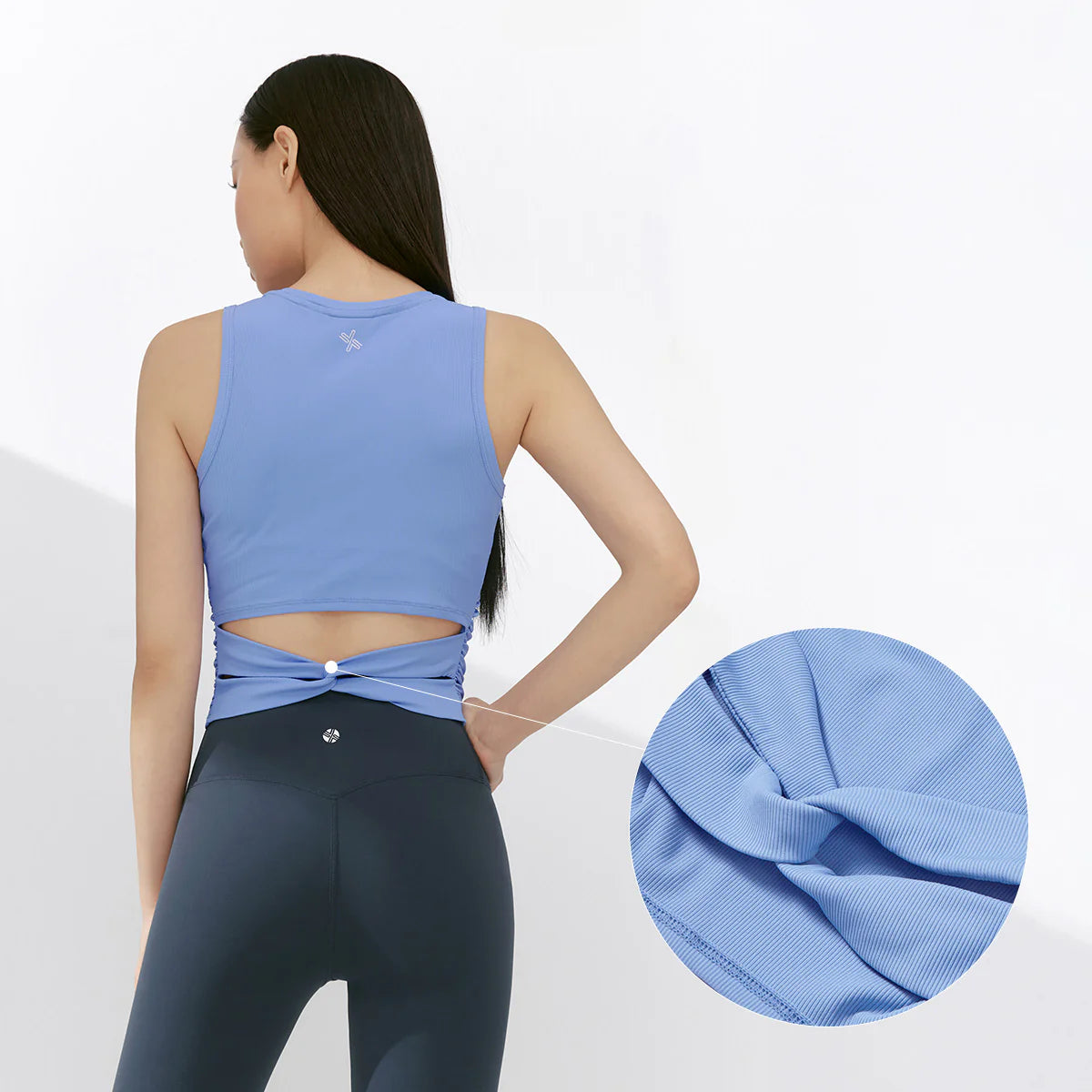 The twisted detail at the lower back enhances the slimming effect on the waistline while creating a feminine silhouette.