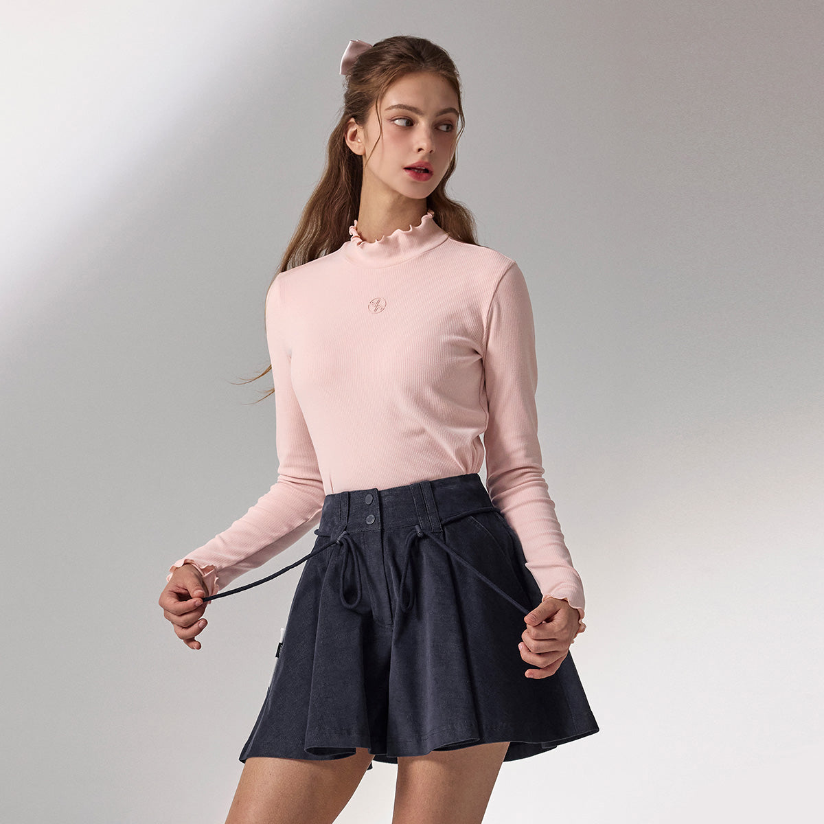 Ruffle Mock Neck Fleece Base Layer