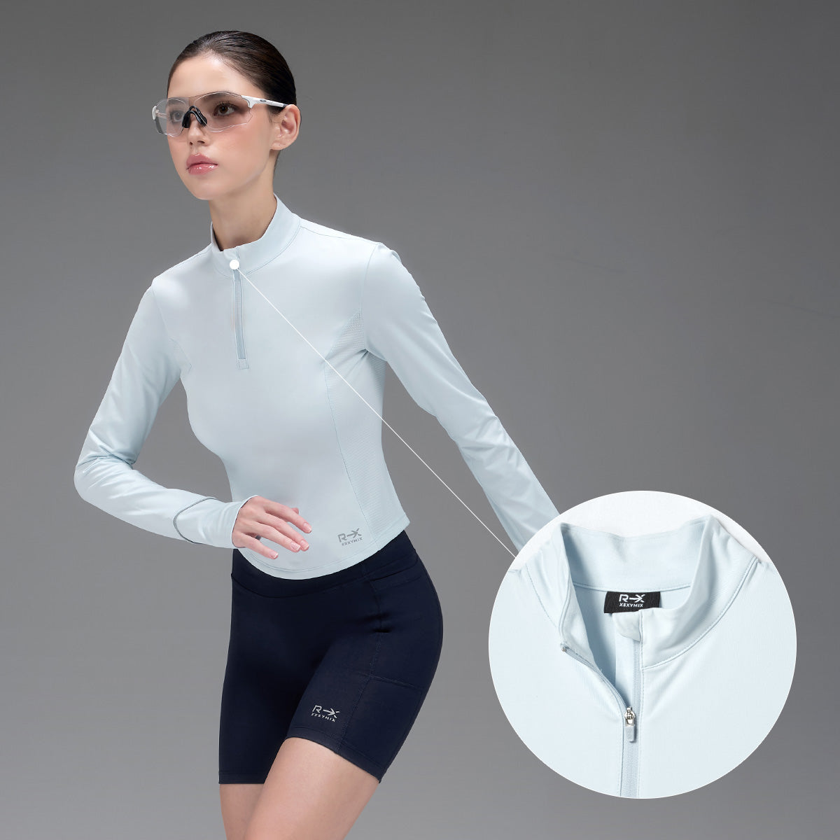 The half-neck design gently wraps the neckline, and the adjustable half-zip style makes it easy to put on and take off.