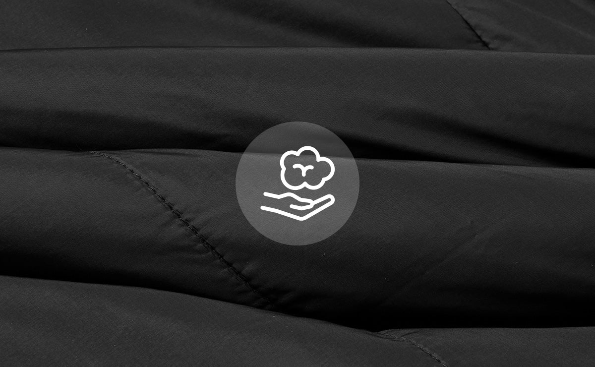 Made with high-density fabric finished with cire processing instead of chemical coating, it offers a natural sheen and soft texture while providing excellent insulation thanks to the padding fill.