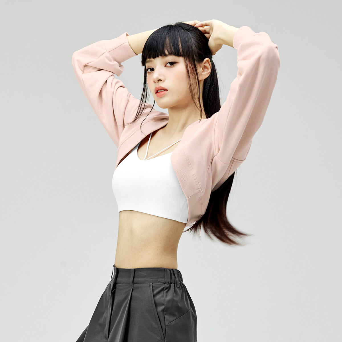 It creates a voluminous balloon fit by putting shirring wrinkles on the sleeves, creating a feminine mood that differentiates it from regular fit cardigans.