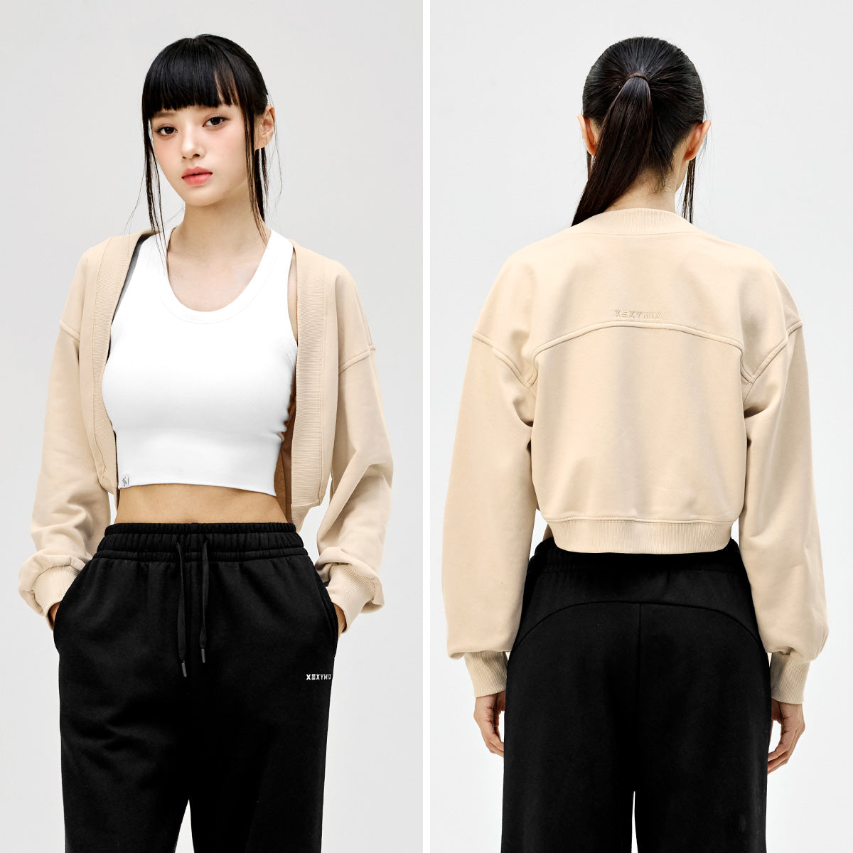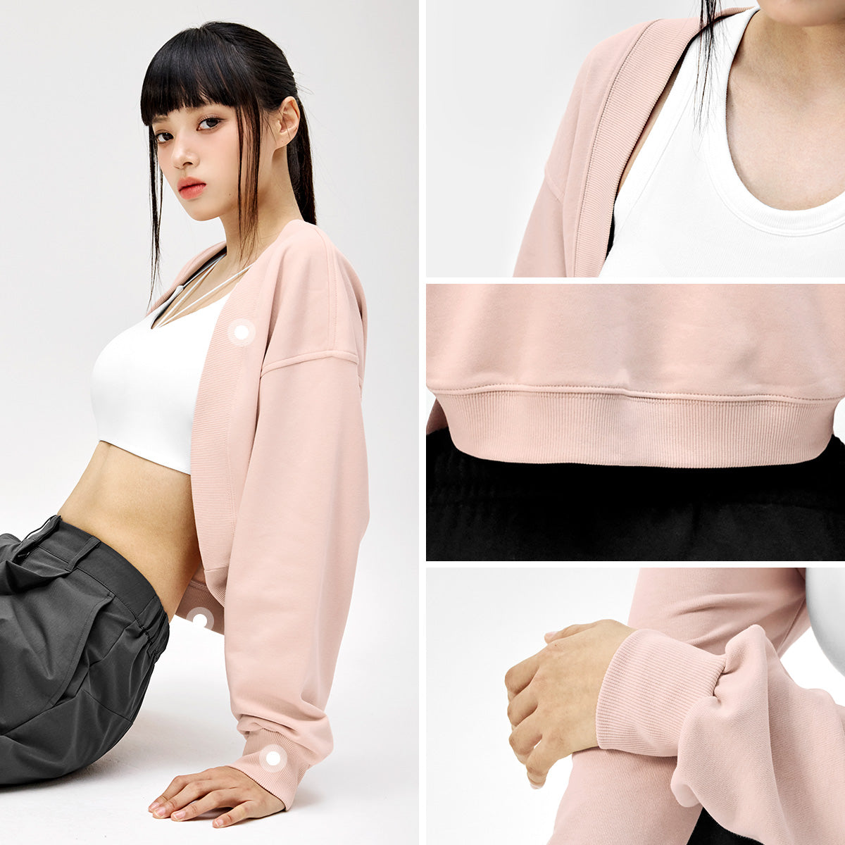 It completes a stable silhouette by finishing the line and sleeve hem from the neckline to the hem with solid lip fabric.