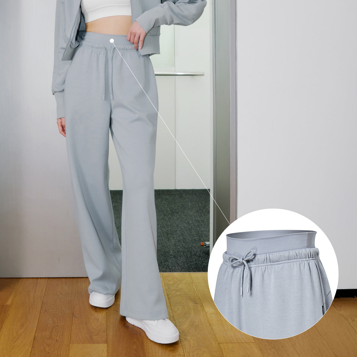Crafted from DTY (Drawn Textured Yarn) blended with high-stretch polyurethane yarn, this material mimics the soft texture of natural fibers while offering compression support to shape and secure the waist. The result is a cotton-like touch with enhanced stretch and body-contouring benefits.