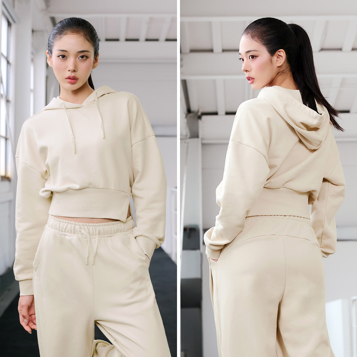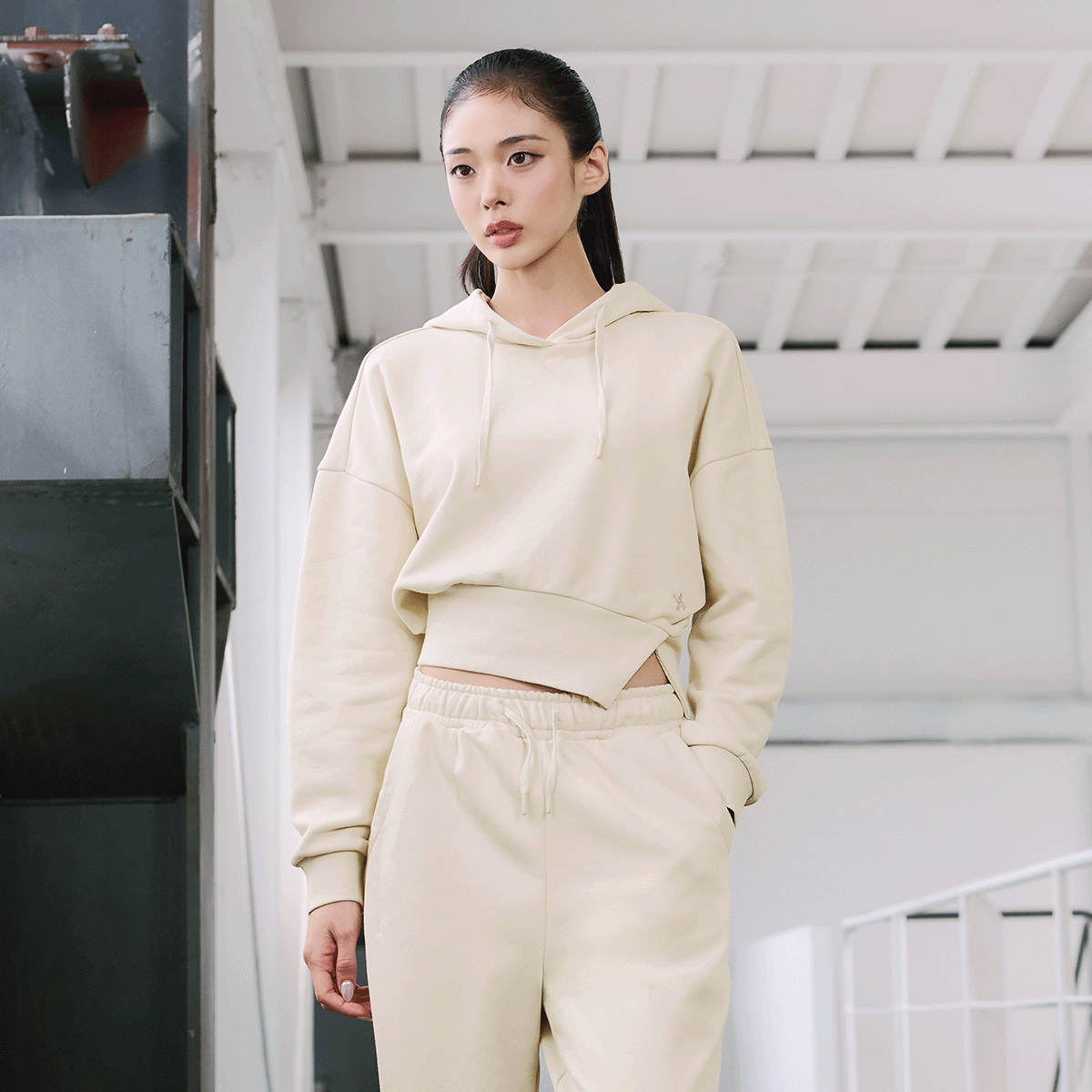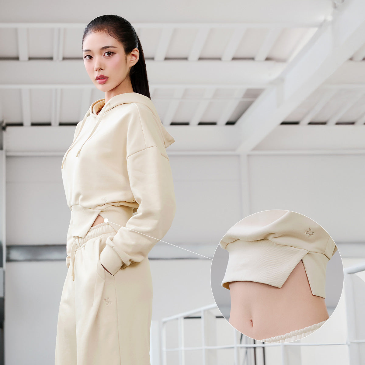 Softly One-Slit Cropped Hoodie