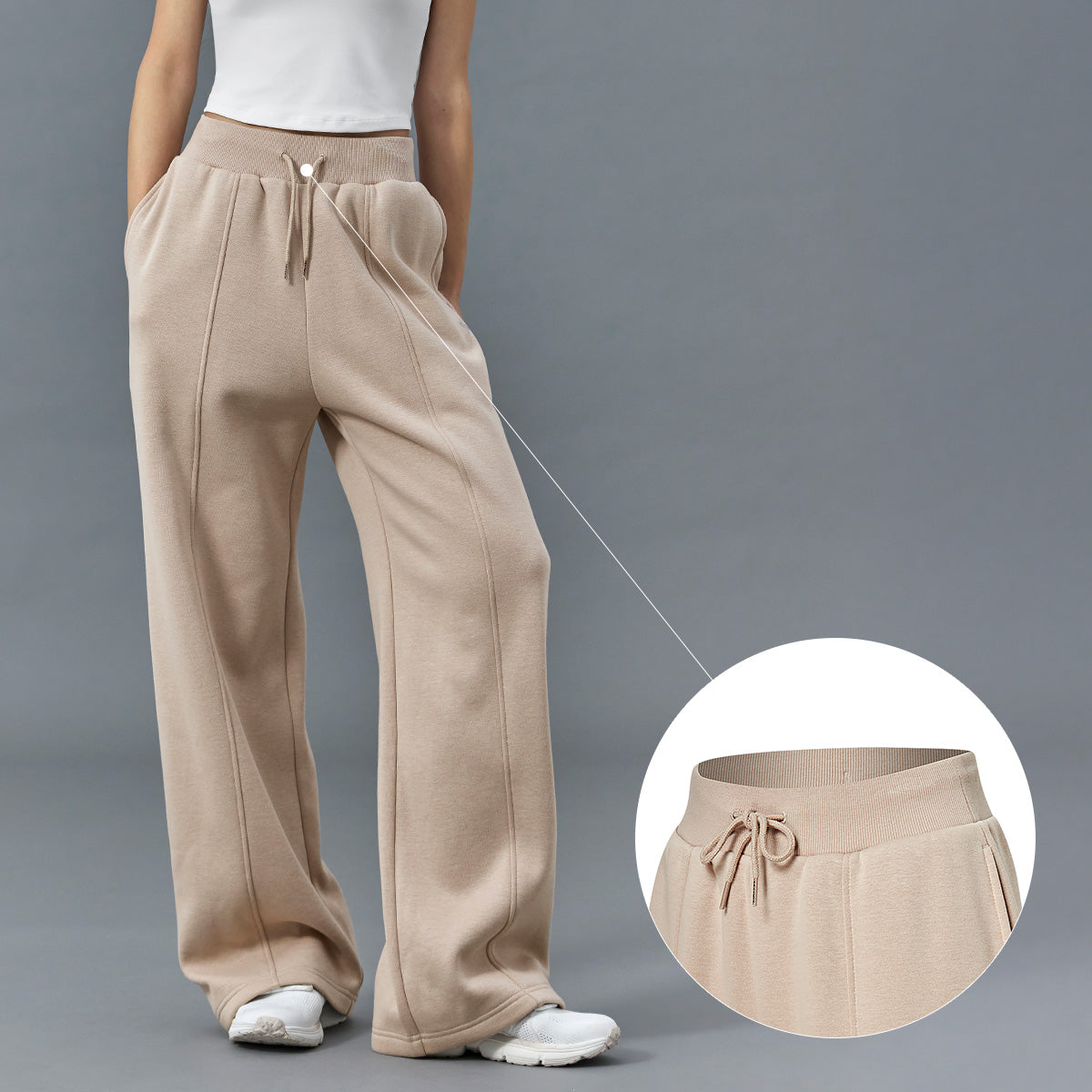 A rib‑fabric waist band provides comfortable wear, and a drawstring allows adjustment to your body shape for a tailored fit.