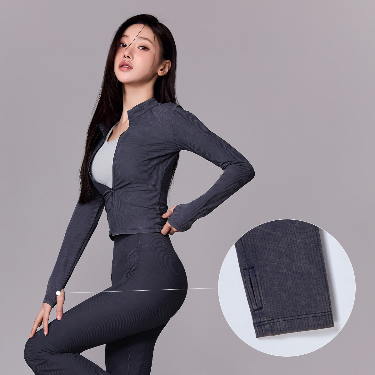 Washing Ribbed Slim Fit Zip-Up Jacket
