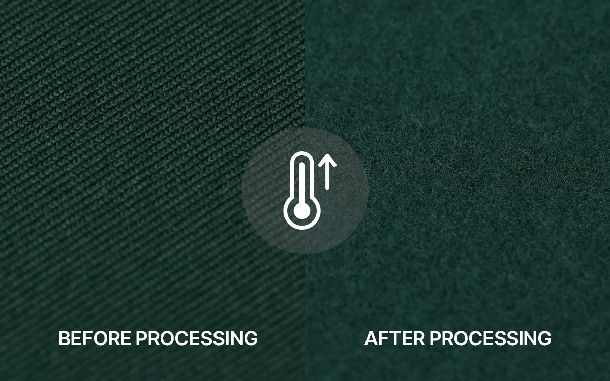 The inner surface is brushed to enhance insulation, providing a thicker, warmer, and cozier feel.